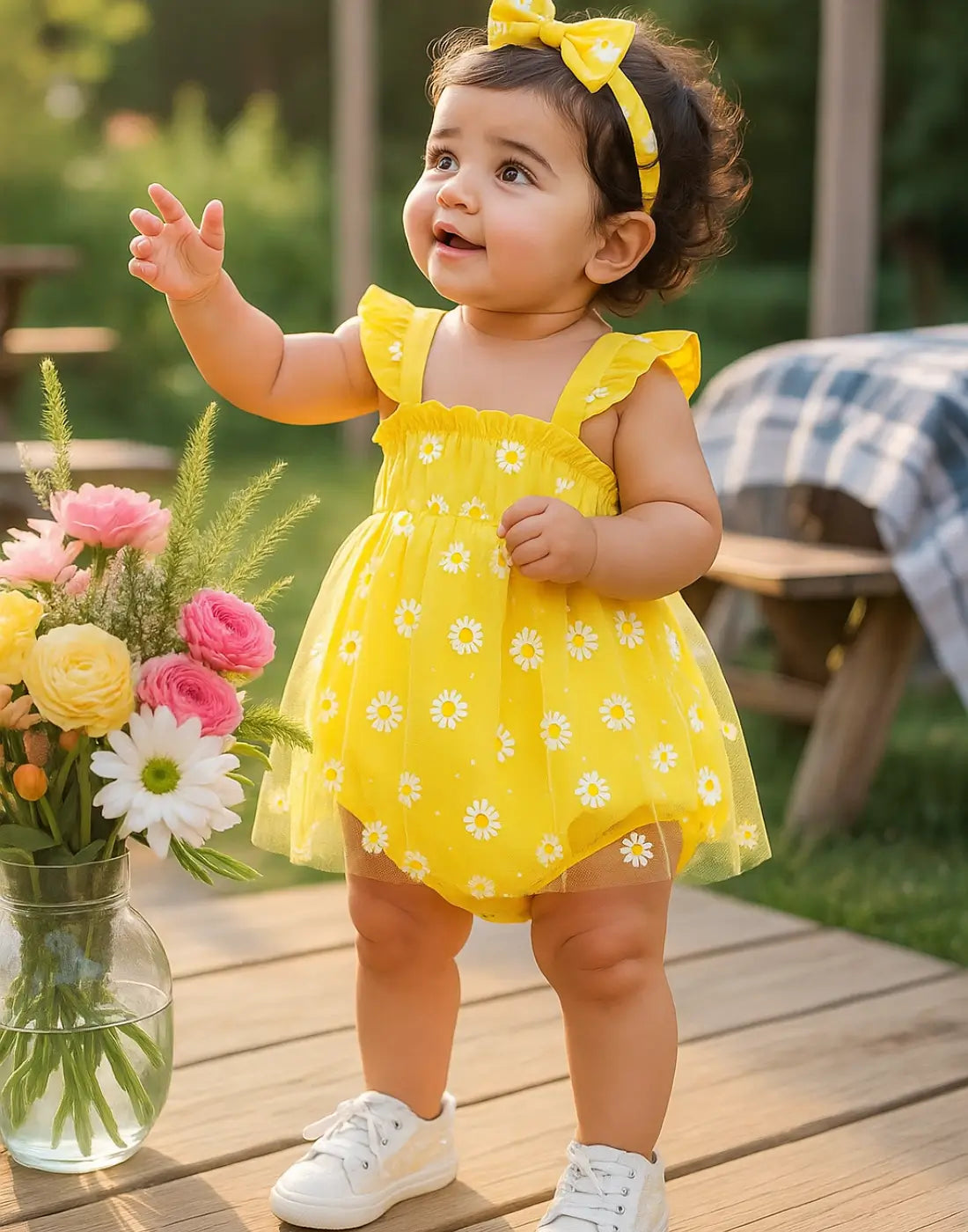 Romper Infantil Menina de Verão – Flores Coloridas e Estampa Poá